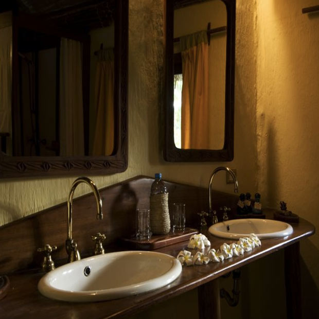 Sept » bungalows de luxe » , suites élégantes et spacieuses , sont installés au milieu des cocotiers surplombant la baie . Les chambres sont meublées avec des pièces sculptées et antiques. Twin et lits doubles sont disponibles et un lit d’appoint peuvent être fournis. Deux bungalows sont de type « famille » avec deux chambres séparées par la salle de bains et un petit couloir privée . Les grandes vérandas privées sont équipées d’un lit Zanzibari , chaises, table et un fauteuil. Chaque bungalow est autonome , la salle de bains est spacieuse et confortable . Il y a deux ventilateurs de plafond, une sur la véranda et une dans la chambre au-dessus du lit .